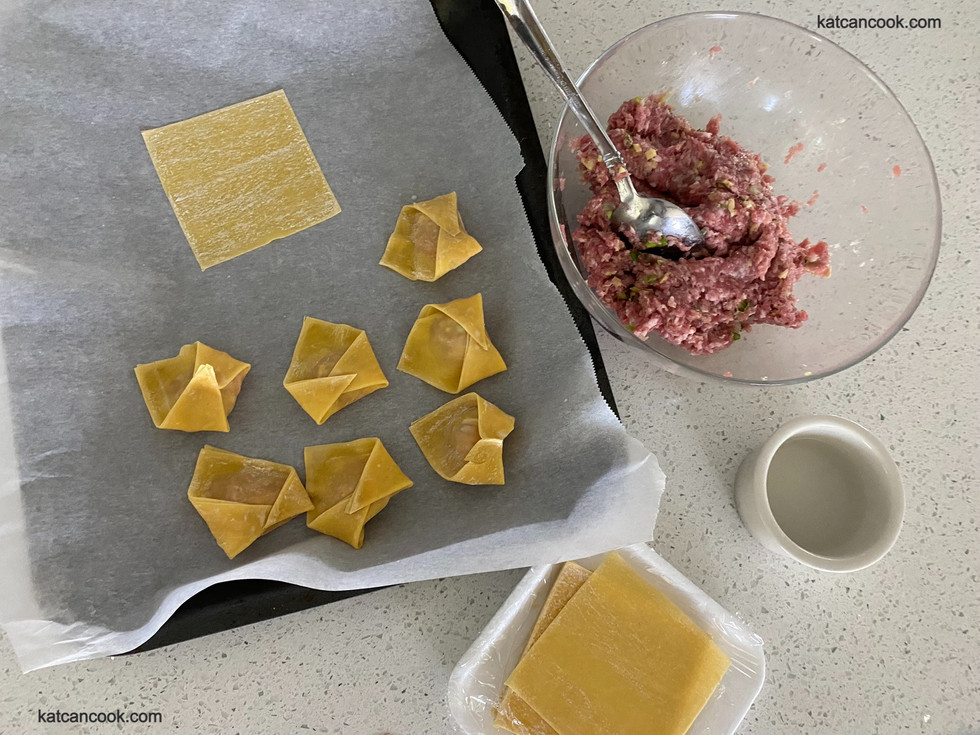 My version uses only a handful of ingredients and doesn't take long to make at all. Wonton or dumpling wrappers are pretty easy to find today at your local Asian grocer or even at some larger grocery chains. Just make sure you're grabbing wonton or dumpling wrappers and not spring roll wrappers as these are different!